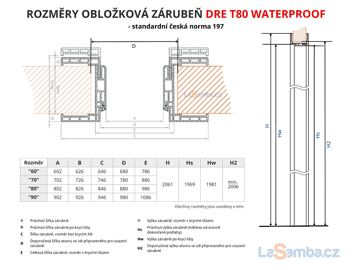 DRE zárubeň obložková regulovatelná T80 WaterProof