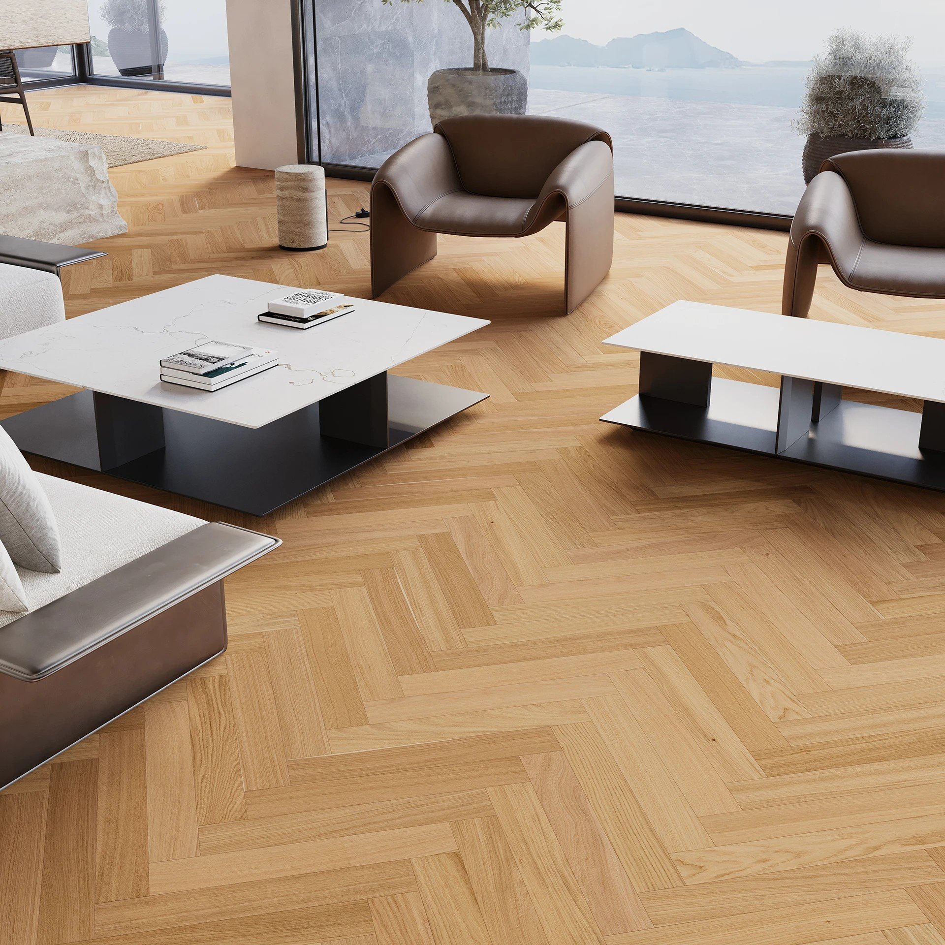 Inovativní moderní hybridní podlaha Futuris Esthetic Herringbone 91 z kolekce Smart wood je voděodolná hybridní podlaha, která kombinuje to nejlepší z dřevěných a SPC podlah. Minerální jádro (SPC nosná deska 5,3 mm) a nášlapná vrstva z pravého dřeva přináší stabilitu, odolnost a krásný přírodní vzhled. Rozměr jednotlivých lamel je 91.3 x 547.8 mm a skládají se do oblíbeného stromečku (herringbone).