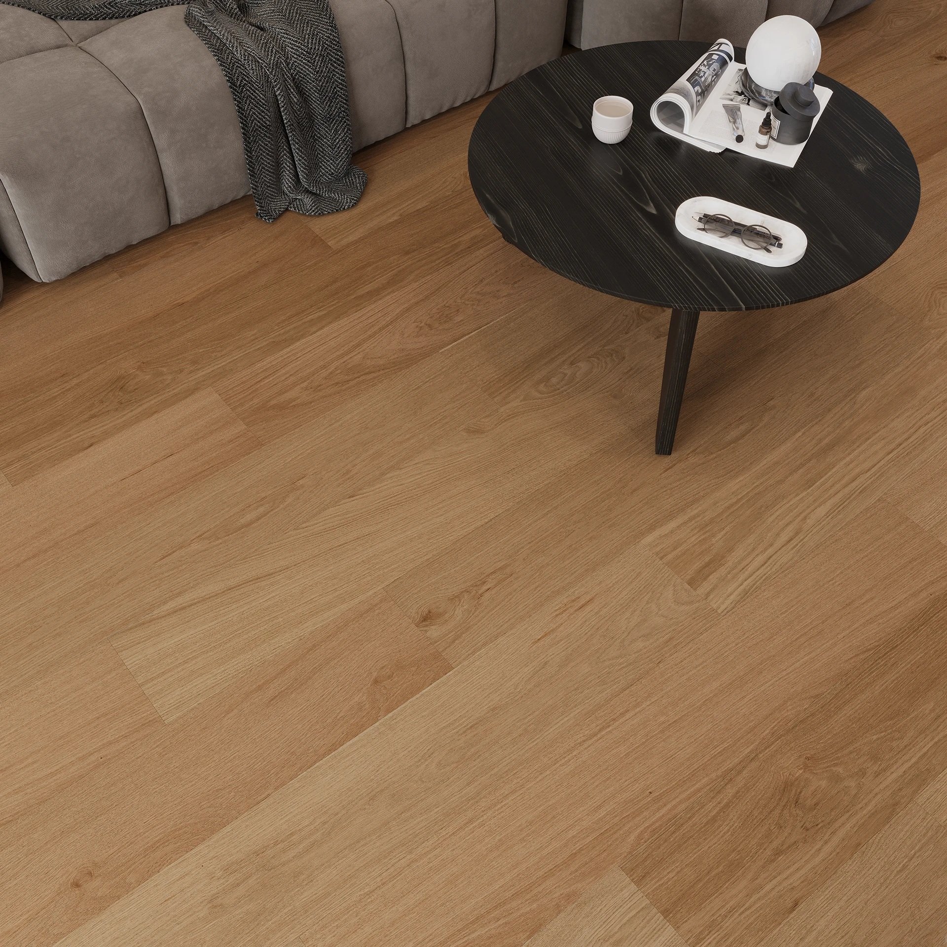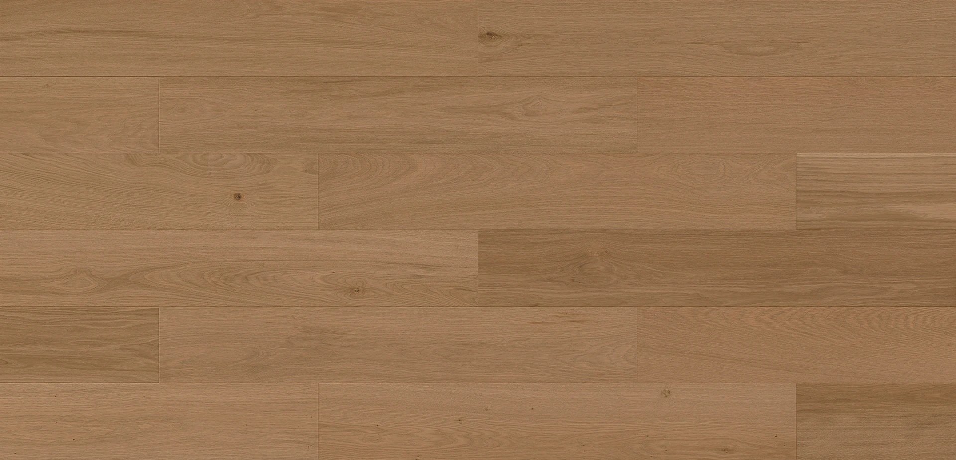 Dubová podlaha ve světlém, teple hnědém odstínu dodává interiéru přirozené teplo a útulnost. Lehce ztmavené dřevo podtrhuje autentickou kresbu dubu i jeho jemné letokruhy, čímž vytváří harmonický a nadčasový základ pro různé styly bydlení.