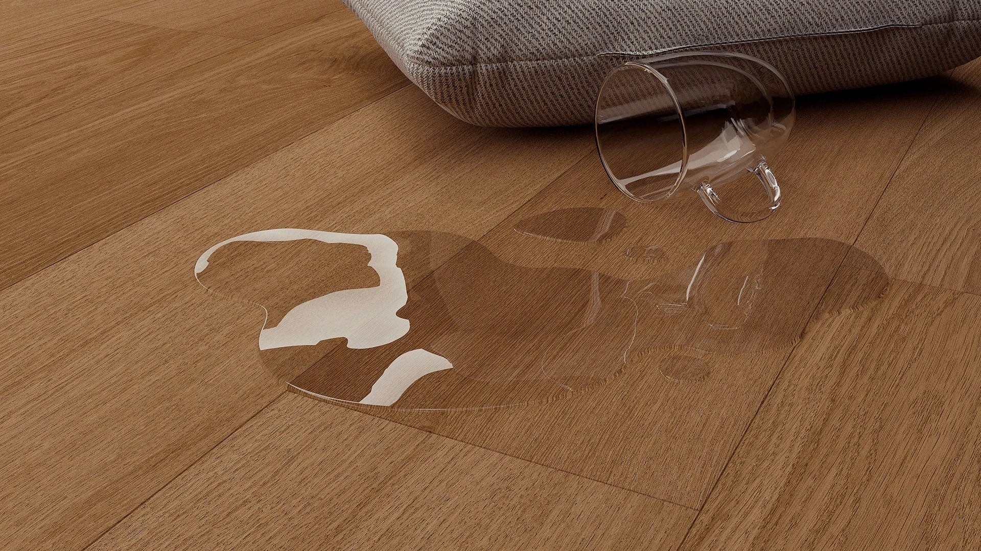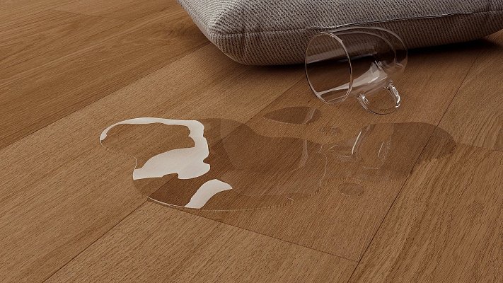 Hybridní skladba podlahy ji chrání před poškozením vlhkostí a politím. Je tedy vhodná i do koupelen, kuchyní, chodby apod. Využijete ji tedy v celém bytě. Díky zámku i4F ji pak můžete pokládat souvisle až do plochy 144 m2. Nemusíte tedy dělat dilatační spáry mezi místnostmi, dávat prahy apod.