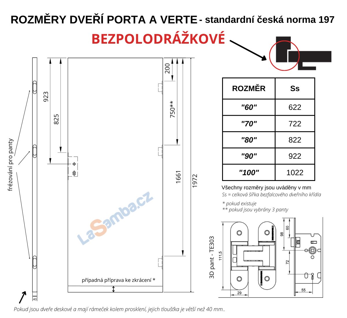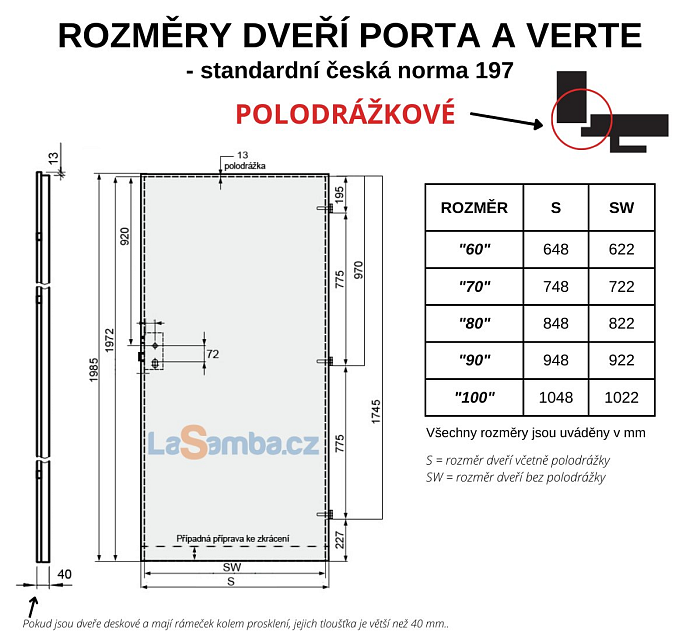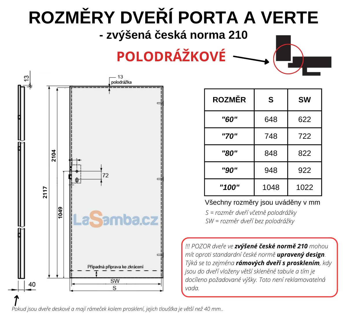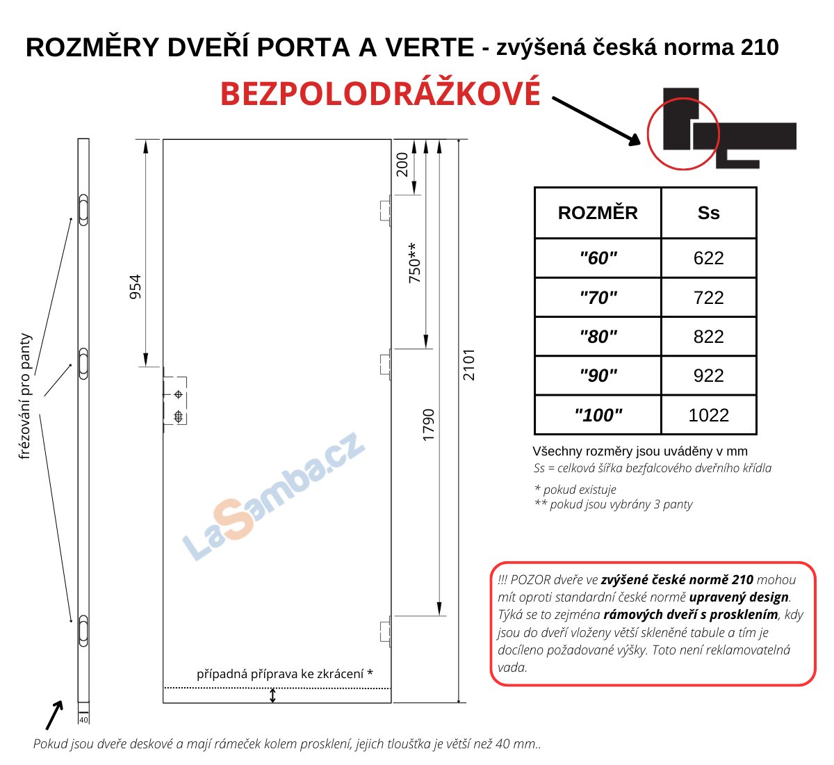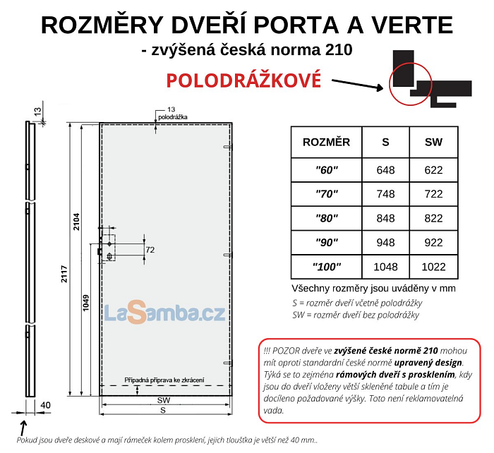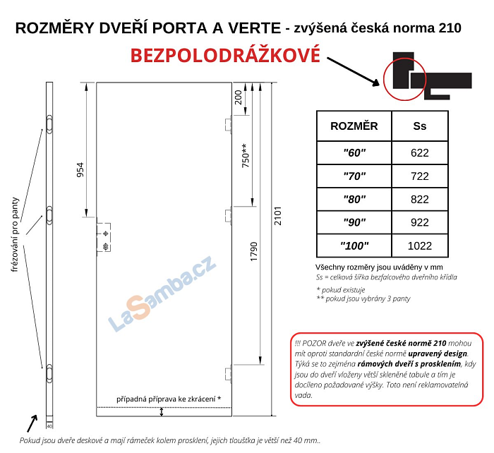 informace: Dveře i zárubně se vyrábí na zakázku. U zakázkové výroby není možné