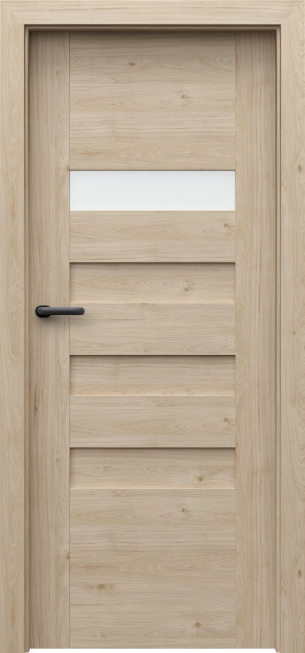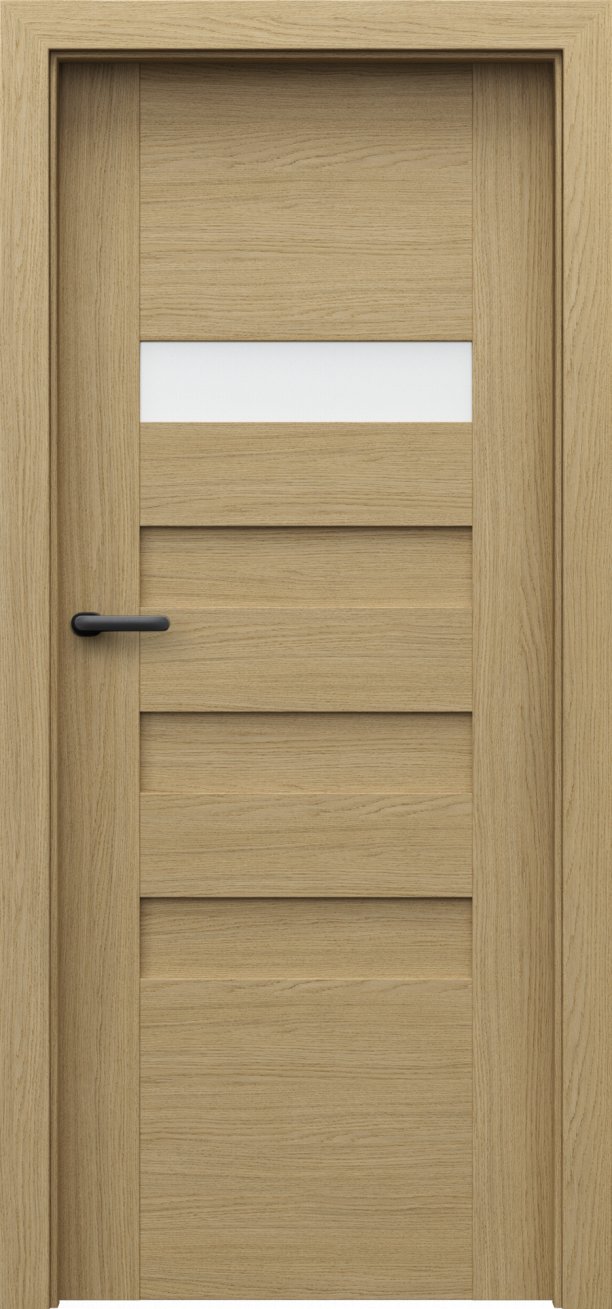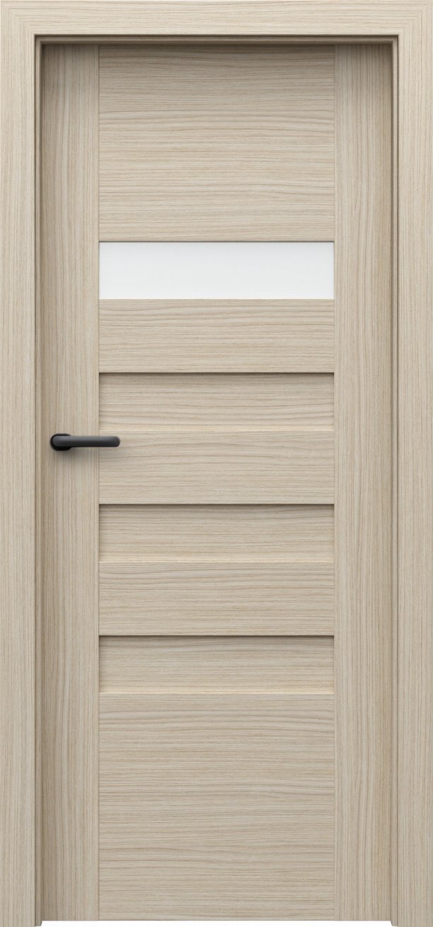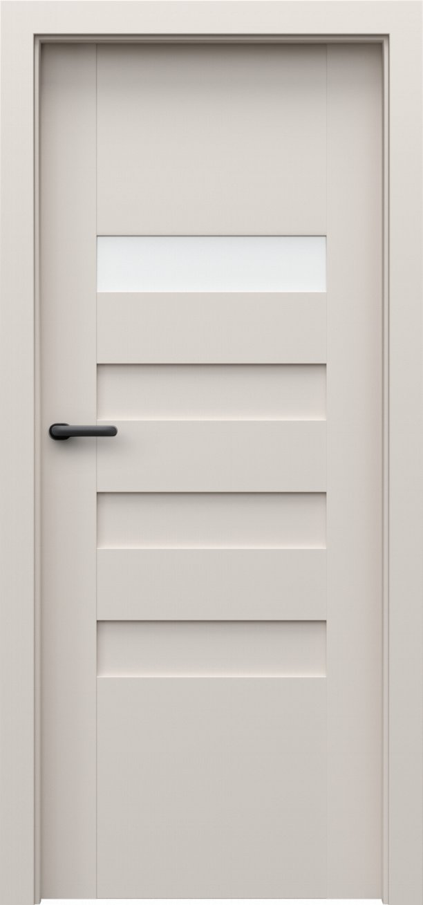 Kolekce interiérových dveří Porta Koncept H v sobě spojuje jednoduchost, modernost a nadčasovost. Dveře z této kolekce mají kvalitní lepenou, vícevrstvou, dřevěnou konstrukci, která je zárukou kvality, odolnosti a výdrže po mnoho let. Obdélníky ve dveřích jsou buď prosklené tvrzeným matným sklem o síle 6 mm nebo vyplněné MDF deskou ve stejné barvě jako dveře. Dveře z kolekce Porta Koncept H oceníte v interiéru bytu, domu i v komerčních prostorách. Součástí dveří je zámek a tři standardní čepové závěsy.