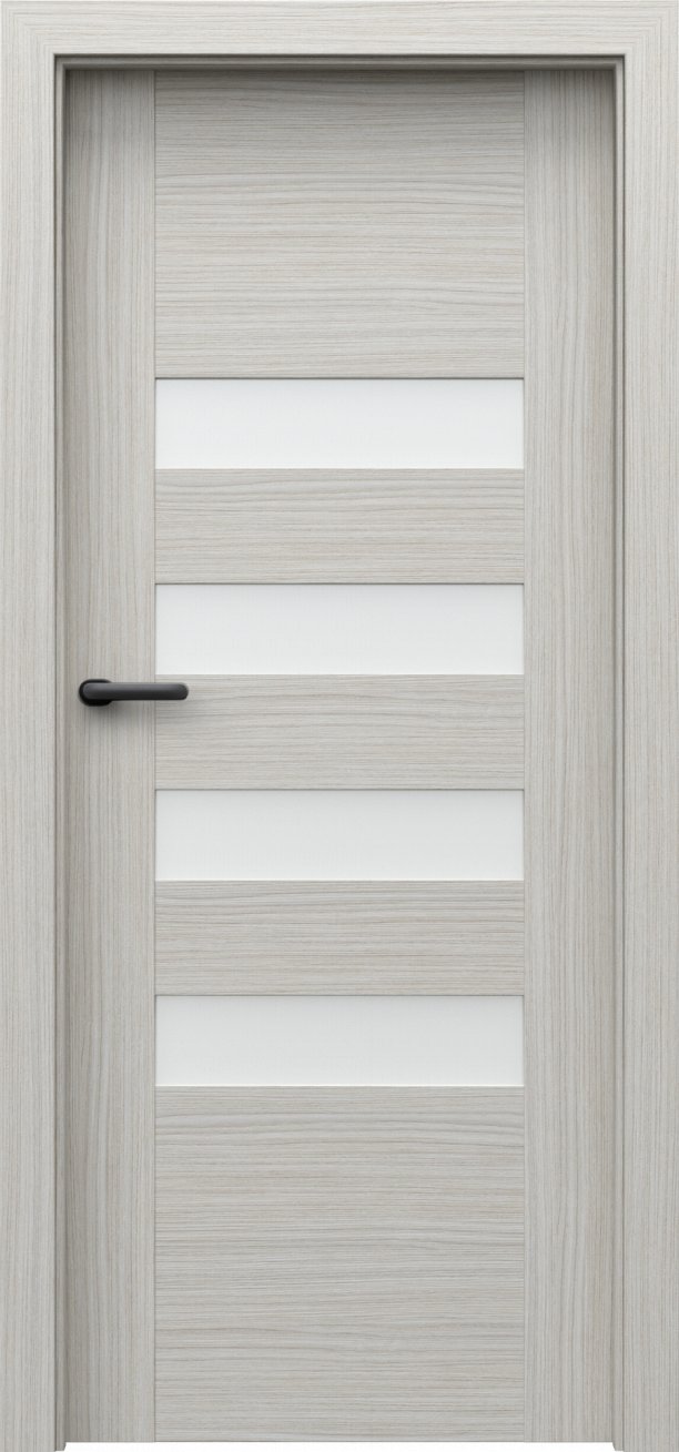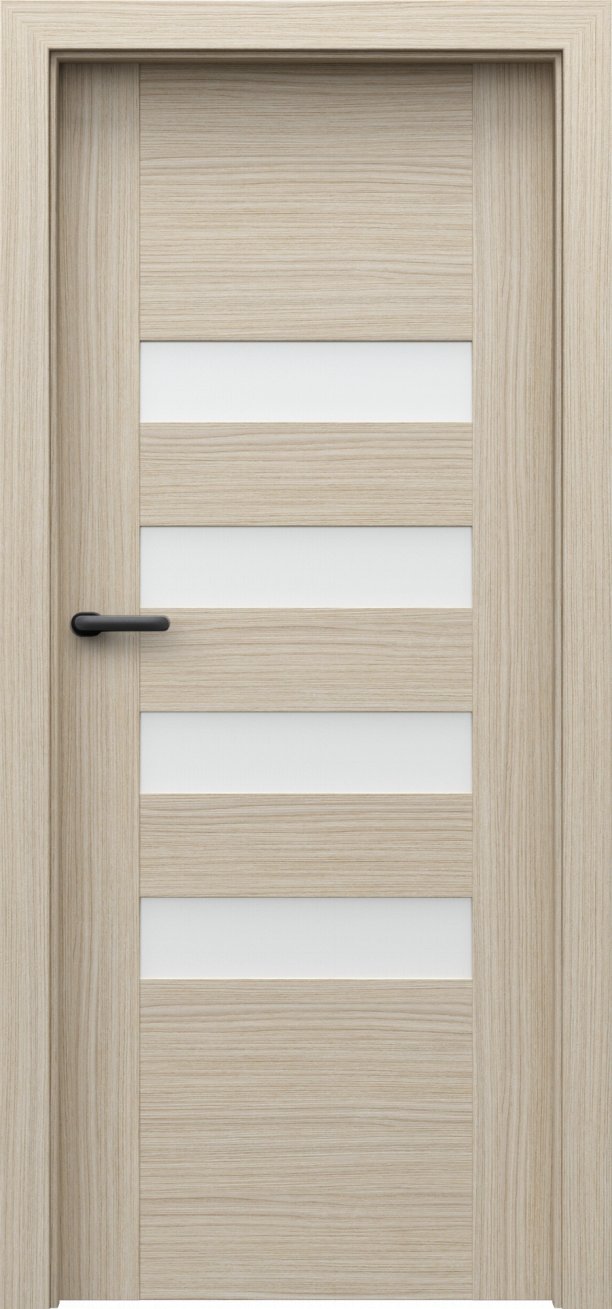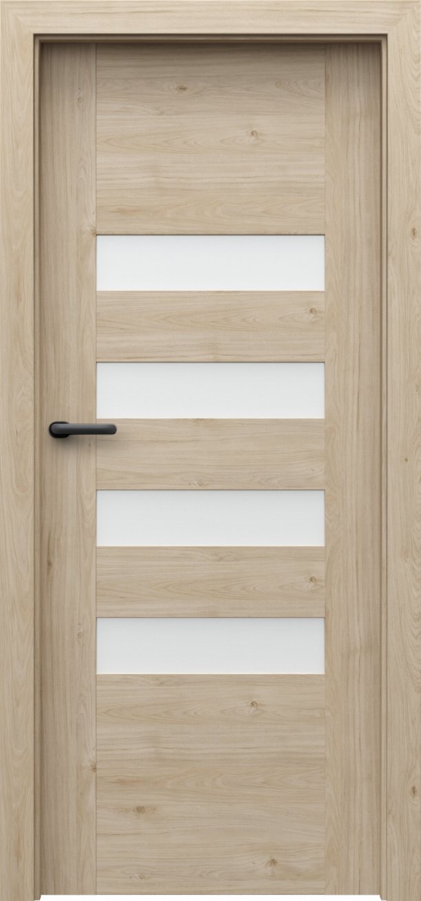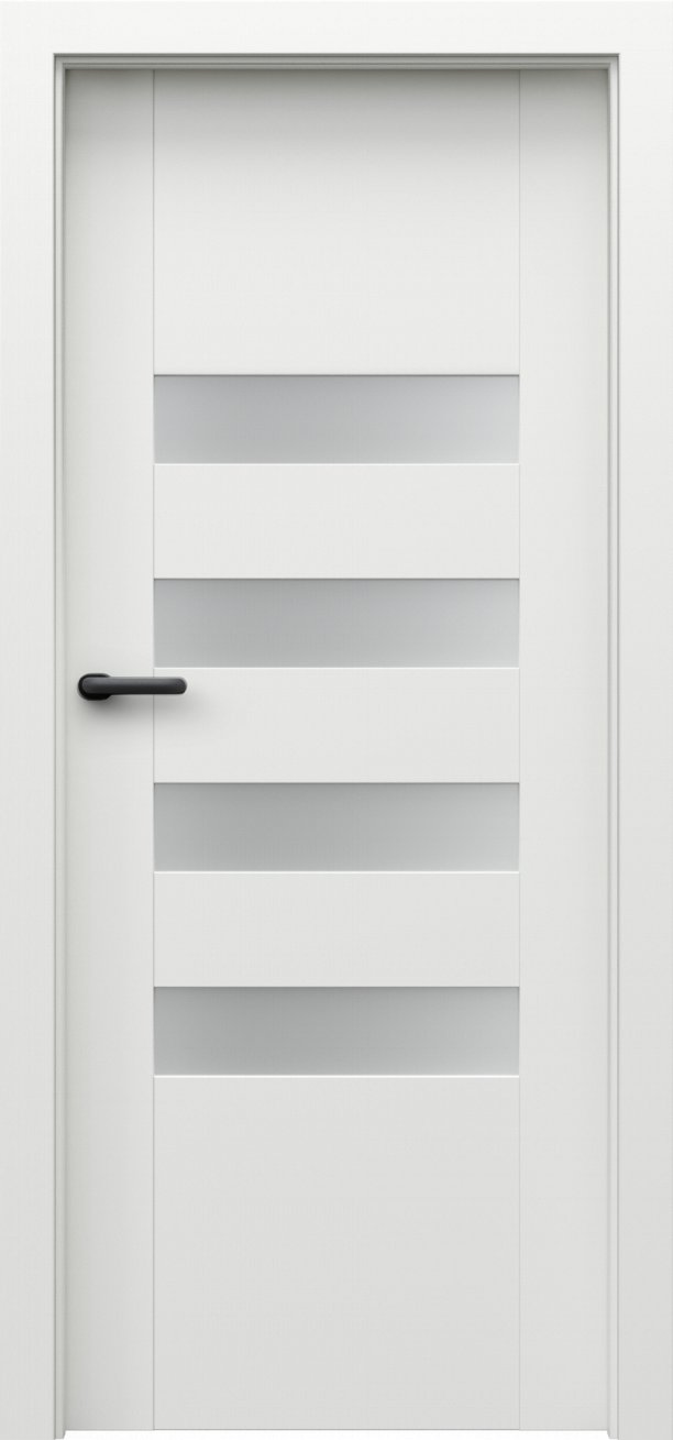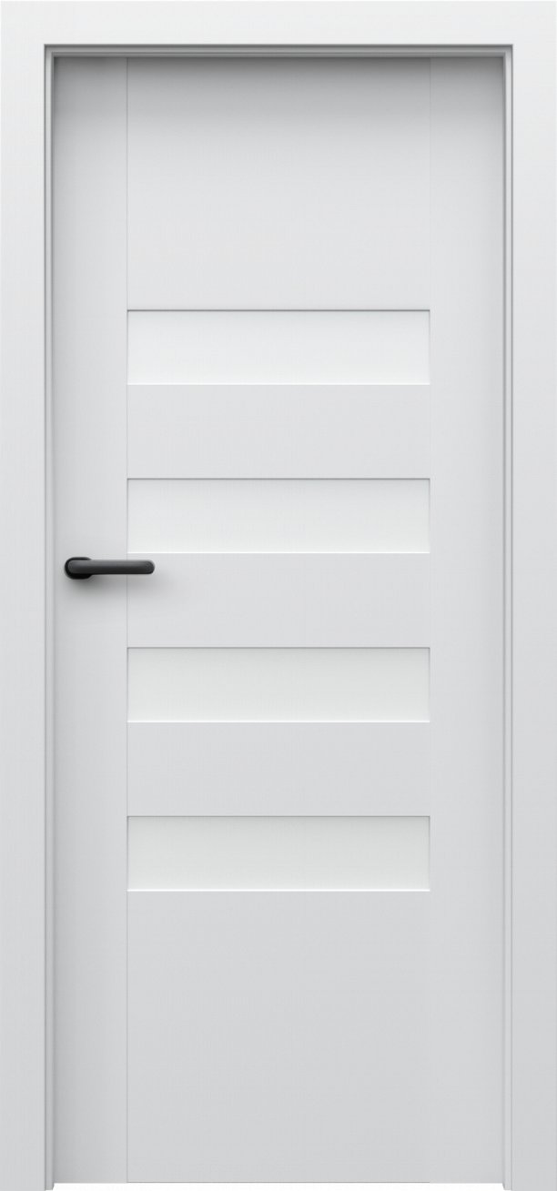 Kolekce interiérových dveří Porta Koncept H v sobě spojuje jednoduchost, modernost a nadčasovost. Dveře z této kolekce mají kvalitní lepenou, vícevrstvou, dřevěnou konstrukci, která je zárukou kvality, odolnosti a výdrže po mnoho let. Obdélníky ve dveřích jsou buď prosklené tvrzeným matným sklem o síle 6 mm nebo vyplněné MDF deskou ve stejné barvě jako dveře. Dveře z kolekce Porta Koncept H oceníte v interiéru bytu, domu i v komerčních prostorách. Součástí dveří je zámek a tři standardní čepové závěsy.