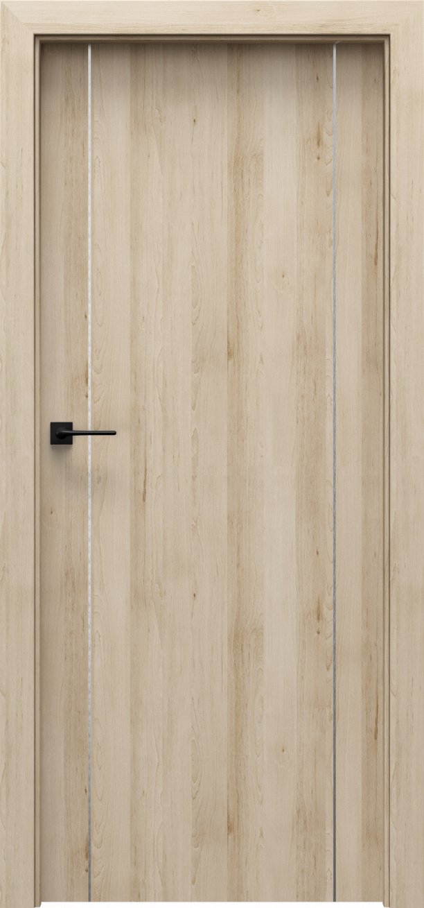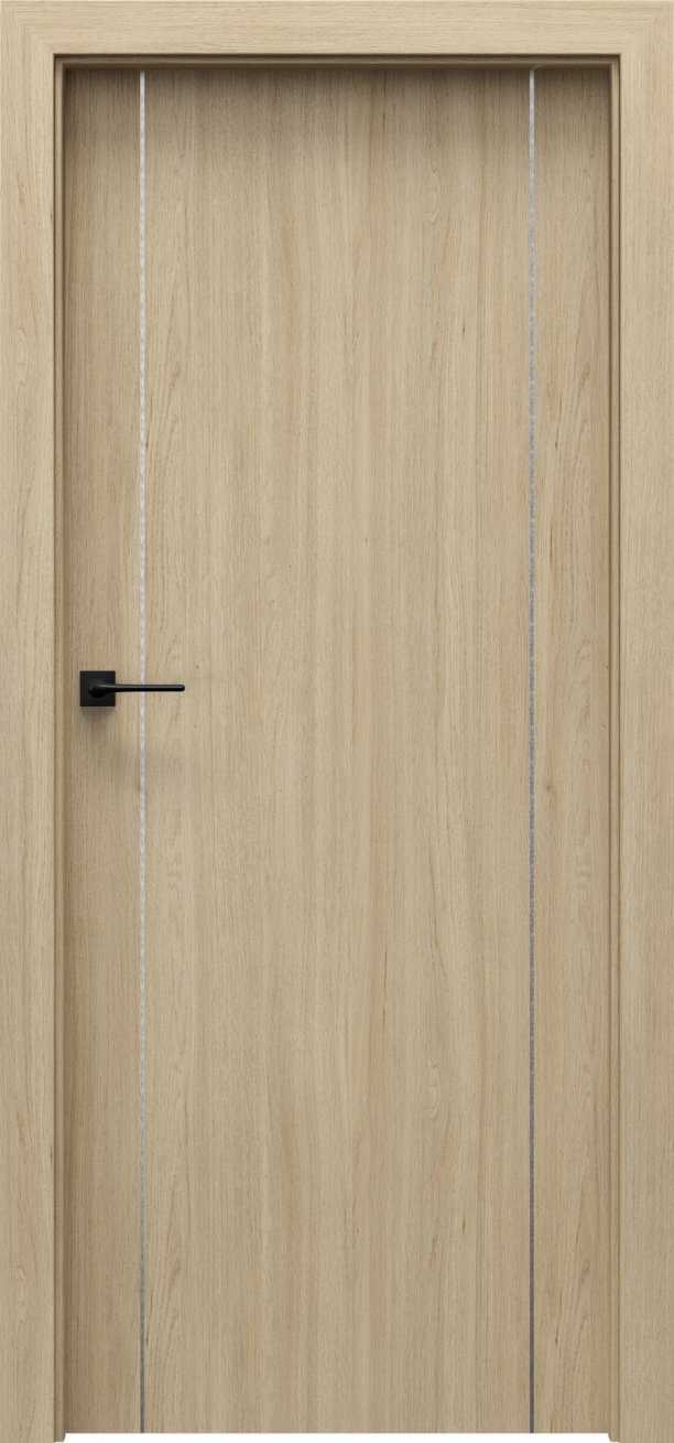 Nadčasové interiérové dveře Porta Line A.1 mají jemný design a nevšední charakter, který jim dodává 6-ti mm stříbrná, zlatá nebo černá intarzie zakomponovaná do plochy křídla. Dveře jsou svým vzhledem decentní, ale zároveň moderní a nadčasové.