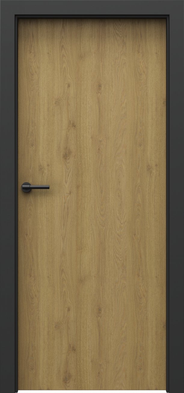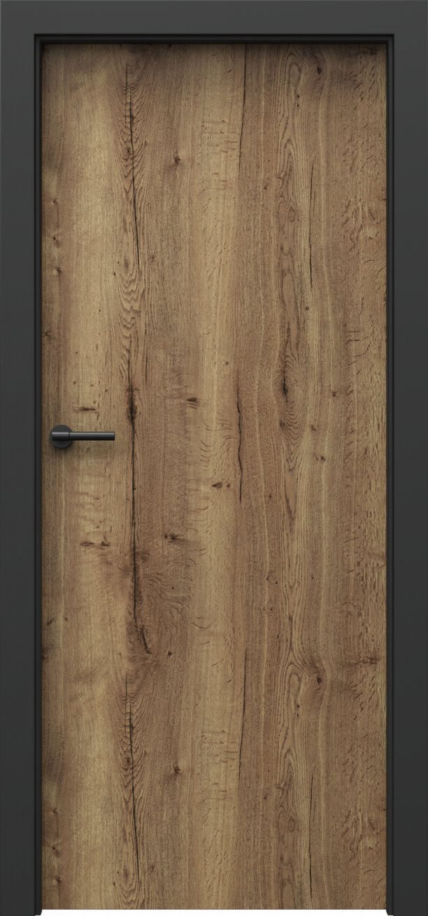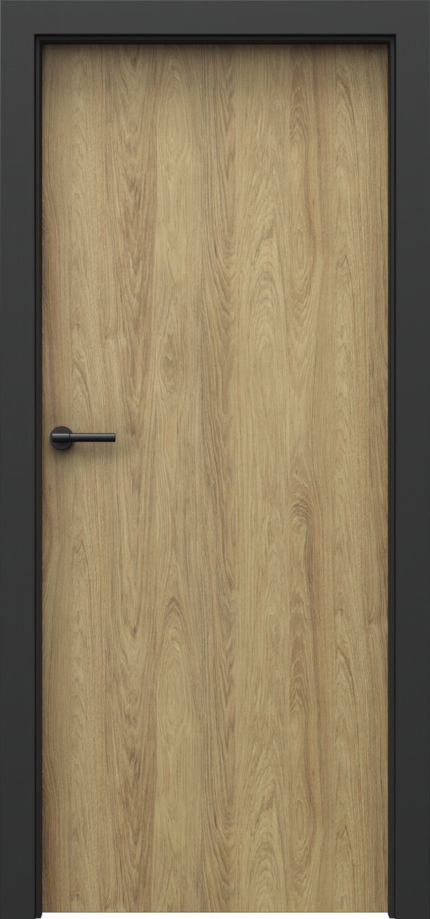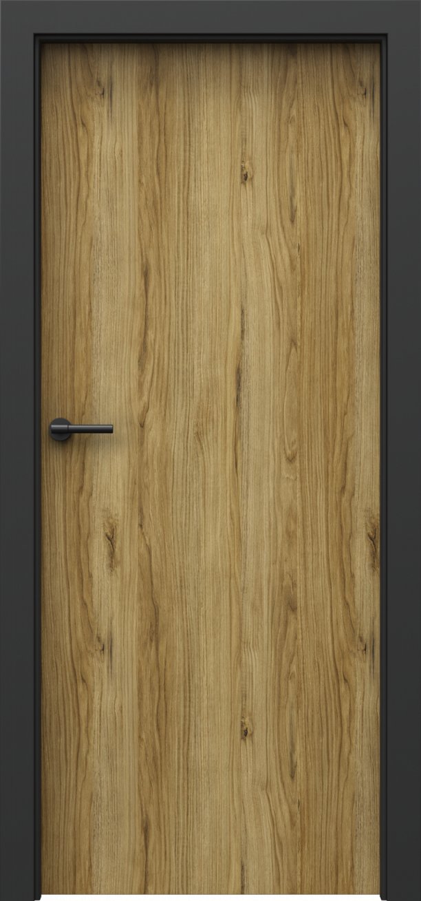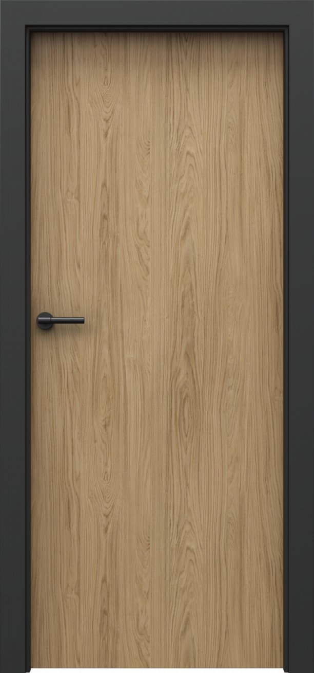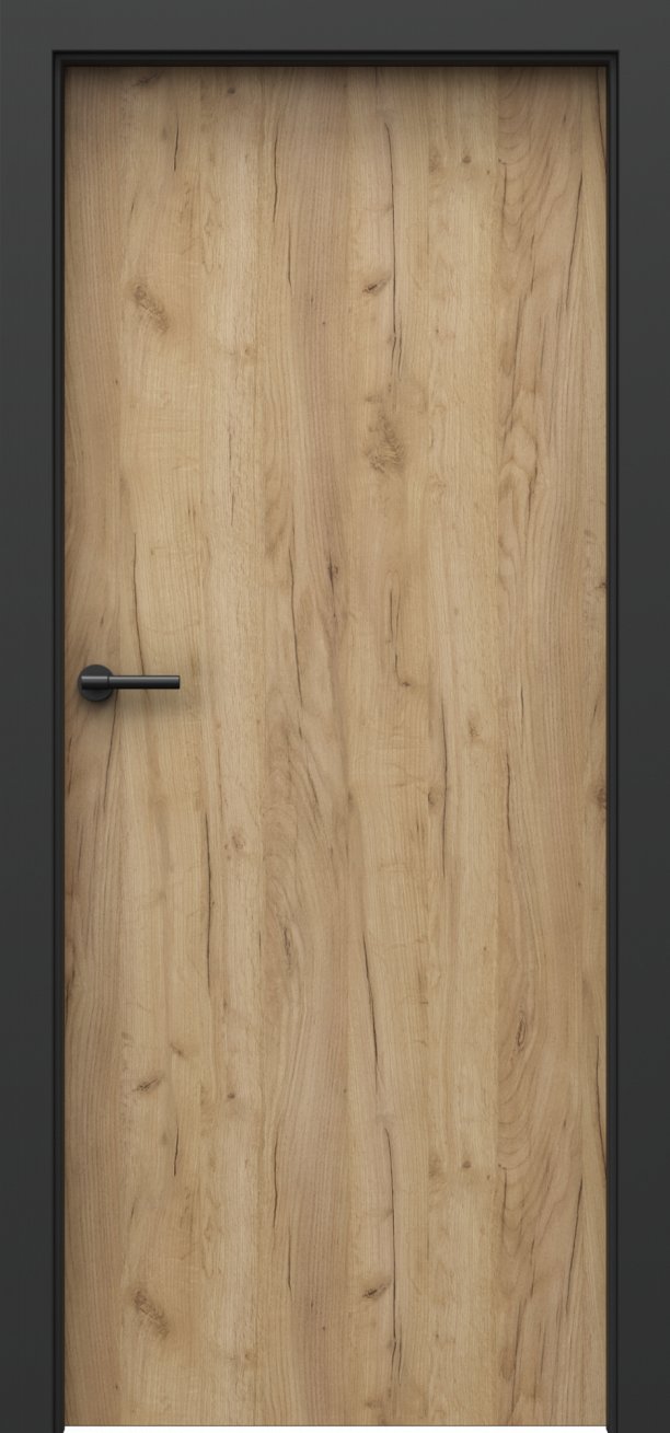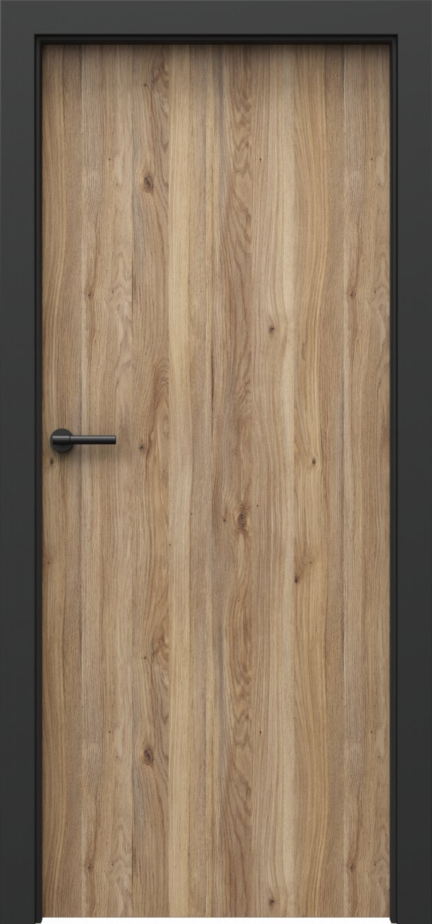U dveří Loft 1.1 jsou linie dřevěného dekoru svislé. Hrany křídla jsou potaženy černou hranovací páskou ABS (dle vybrané barvy zámku a pantů). Ke dveřím je určena zárubeň Porta System Elegance v povrchu "laminát PP - černá".