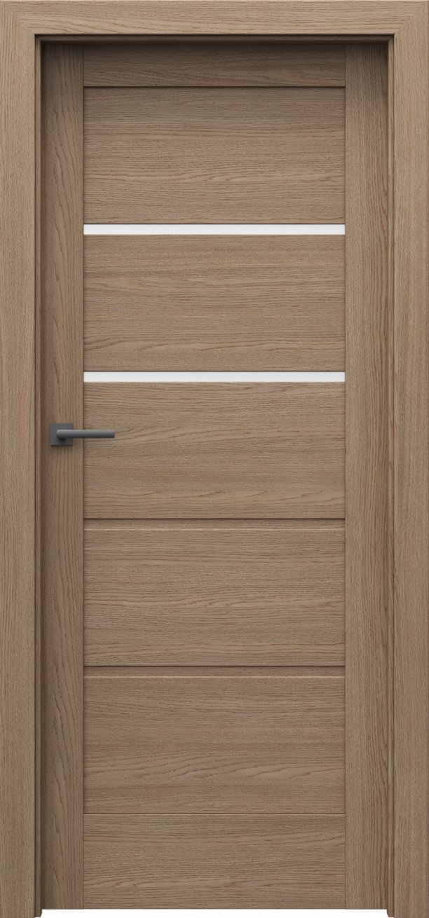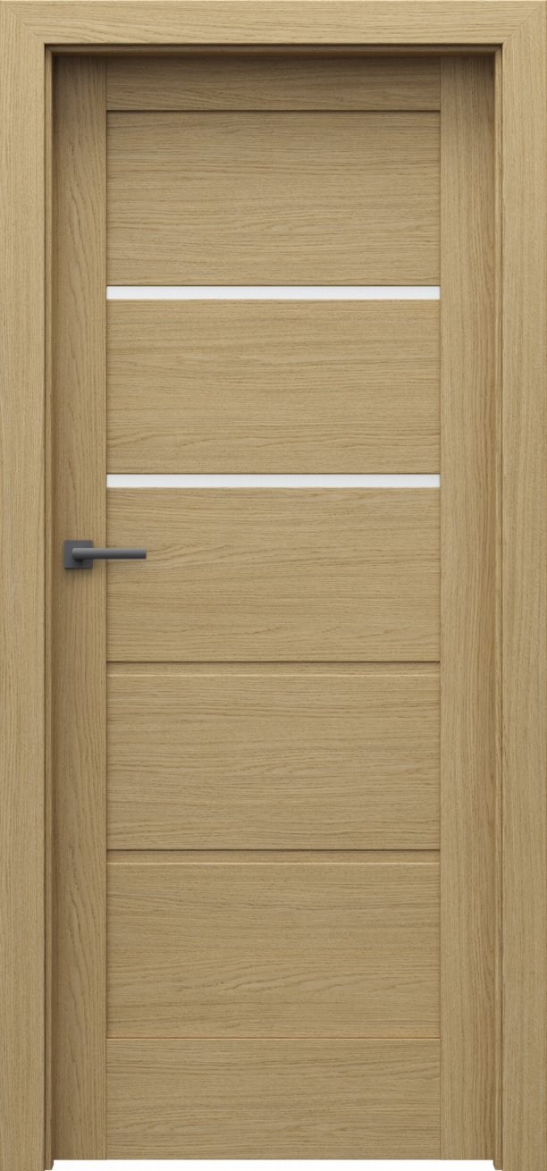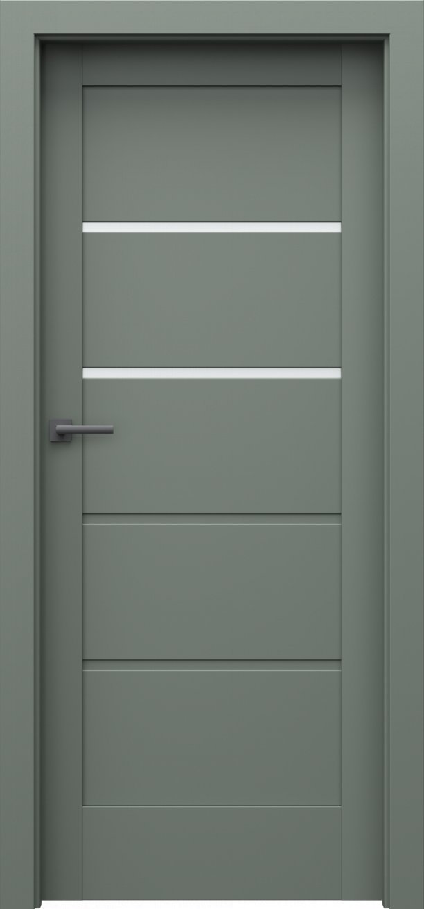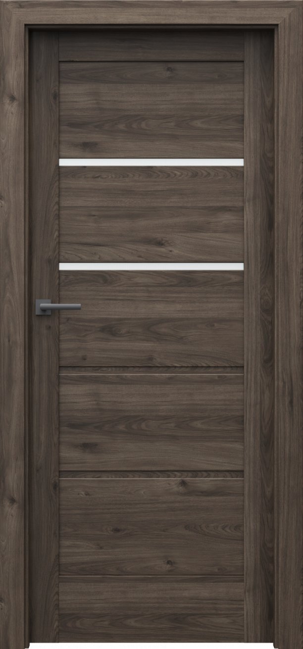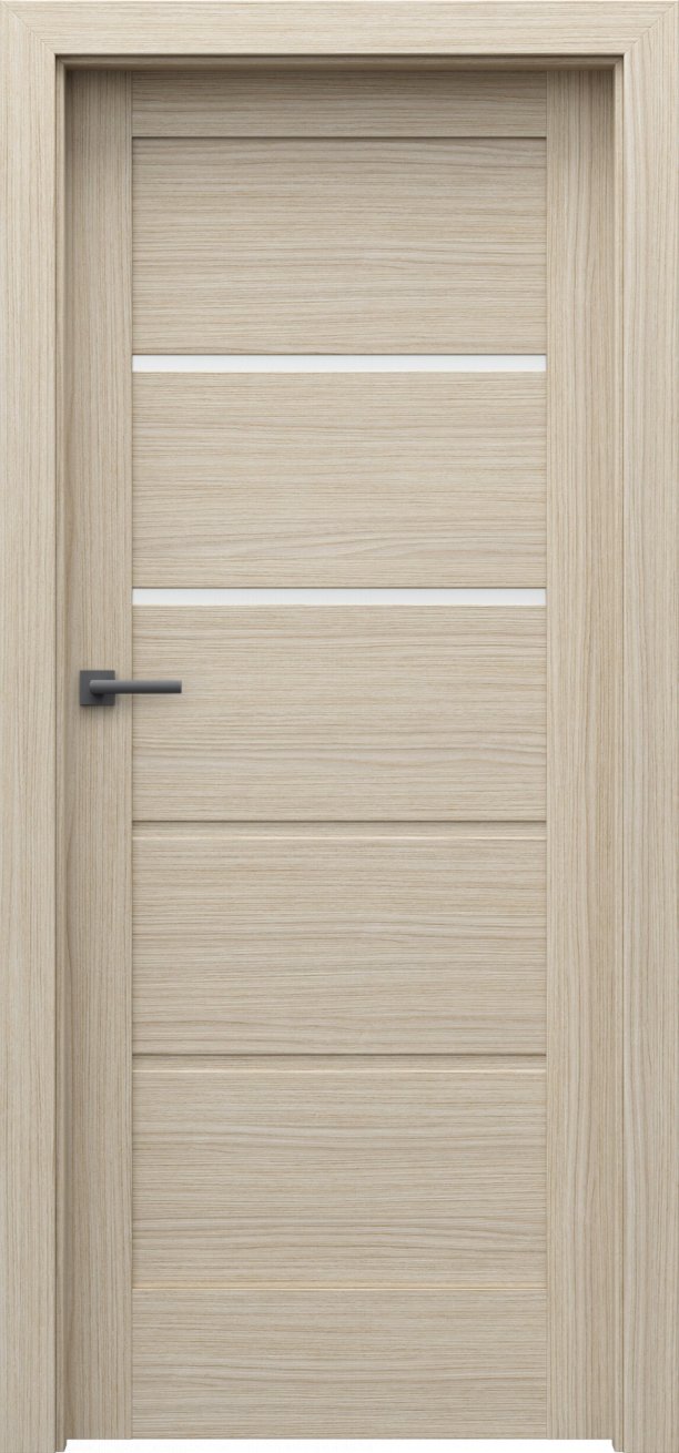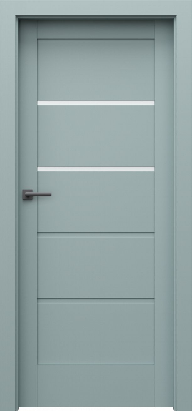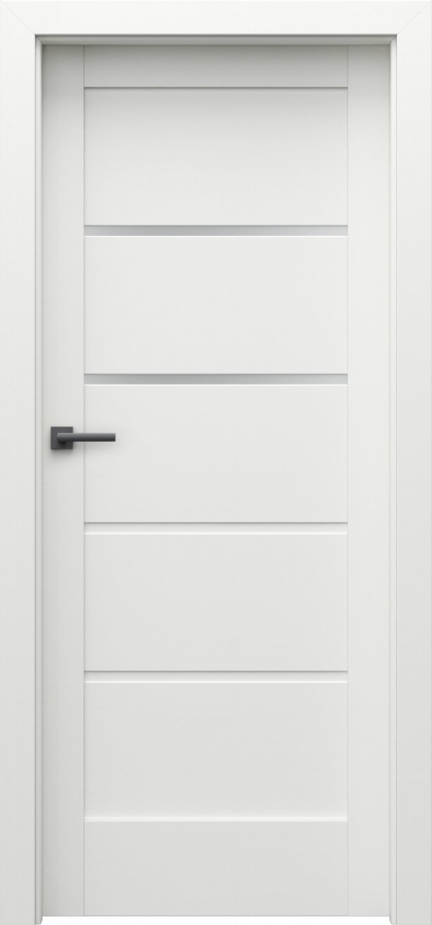 Dveře mají rámovou konstrukci, která je vyrobená z MDF materiálů. Prosklené proužky, u vybraných modelů v kolekci, jsou ze zvoleného skla silného 4 mm. Hrany dveří jsou zabezpečeny proti běžné vlhkosti. Součástí dveří je vybraný zámek.
