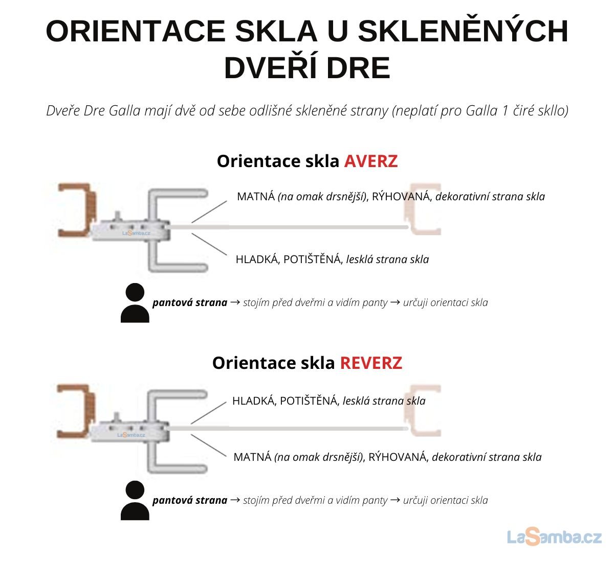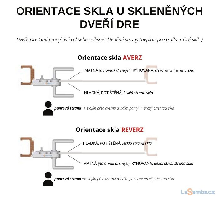 Při zadávání parametrů si tedy vyberete, jak ho chcete mít orientované, aby se vám to hodilo do zbytku interiéru. Pro určení orientace skla je důležité, uvědomit si kde budou mít dveře panty, na tu stranu si "stoupnout", a z tohoto pohledu si vybrat orientaci skla.