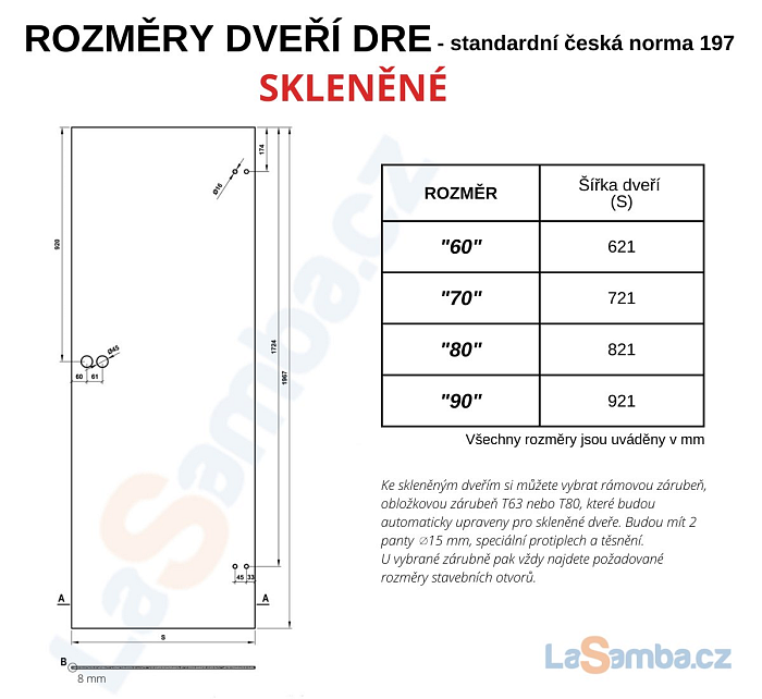 informace: Dveře i zárubně se vyrábí na zakázku. U zakázkové výroby není možné