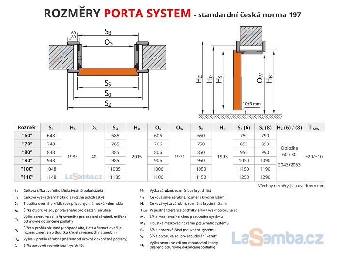 Instalace zárubní je snadná a stejná jako u standardní zárubně Porta System. Proto se tento druh dodává jako sada dílů určených k montáži na místě určení. Montáž zárubně se provádí v místnostech se zcela dokončenými stěnami a podlahou! Nastavitelnost zárubní umožňuje jejich perfektní napasování na zeď. Závěsy pro dveře zaručují stabilitu konstrukce i při intenzivním používání.